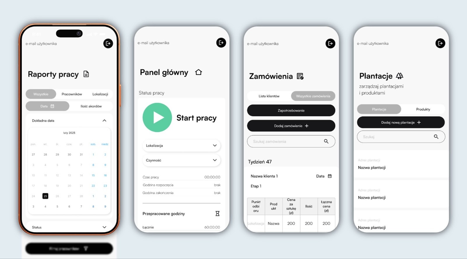- Pełna funkcjonalność offline — aplikacja musiała działać bez internetu na terenach plantacji;